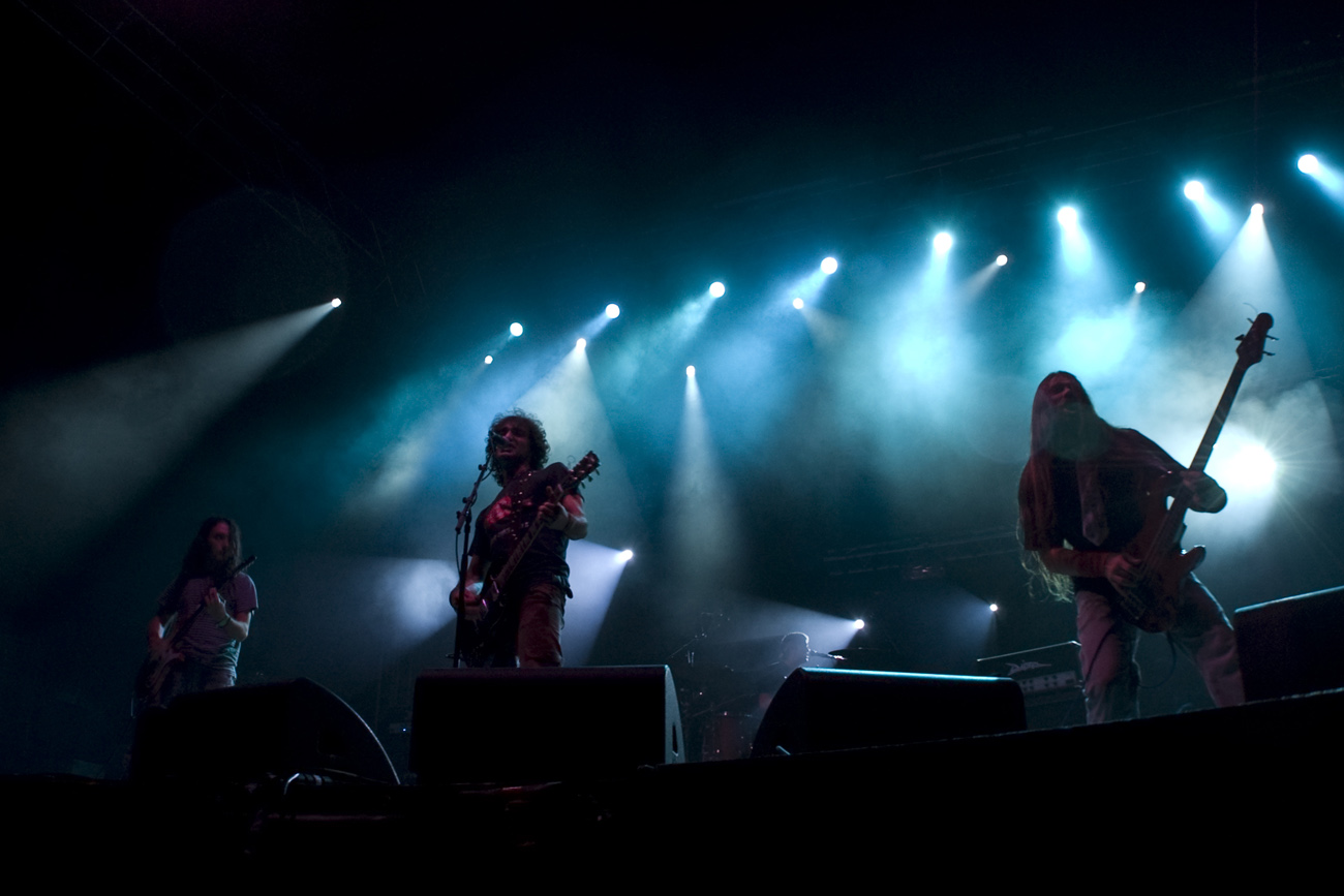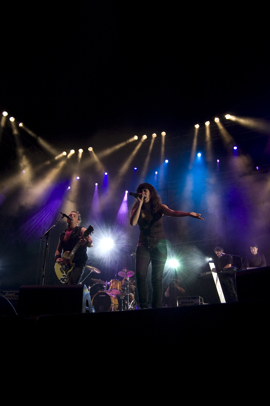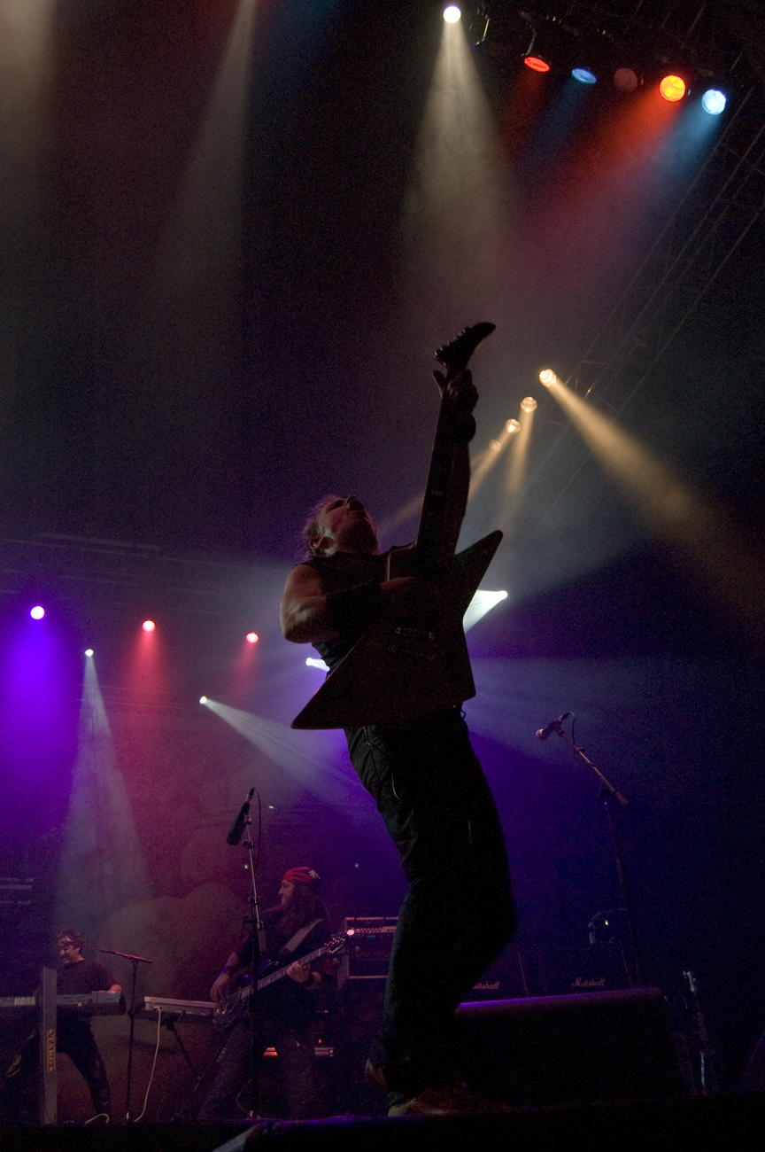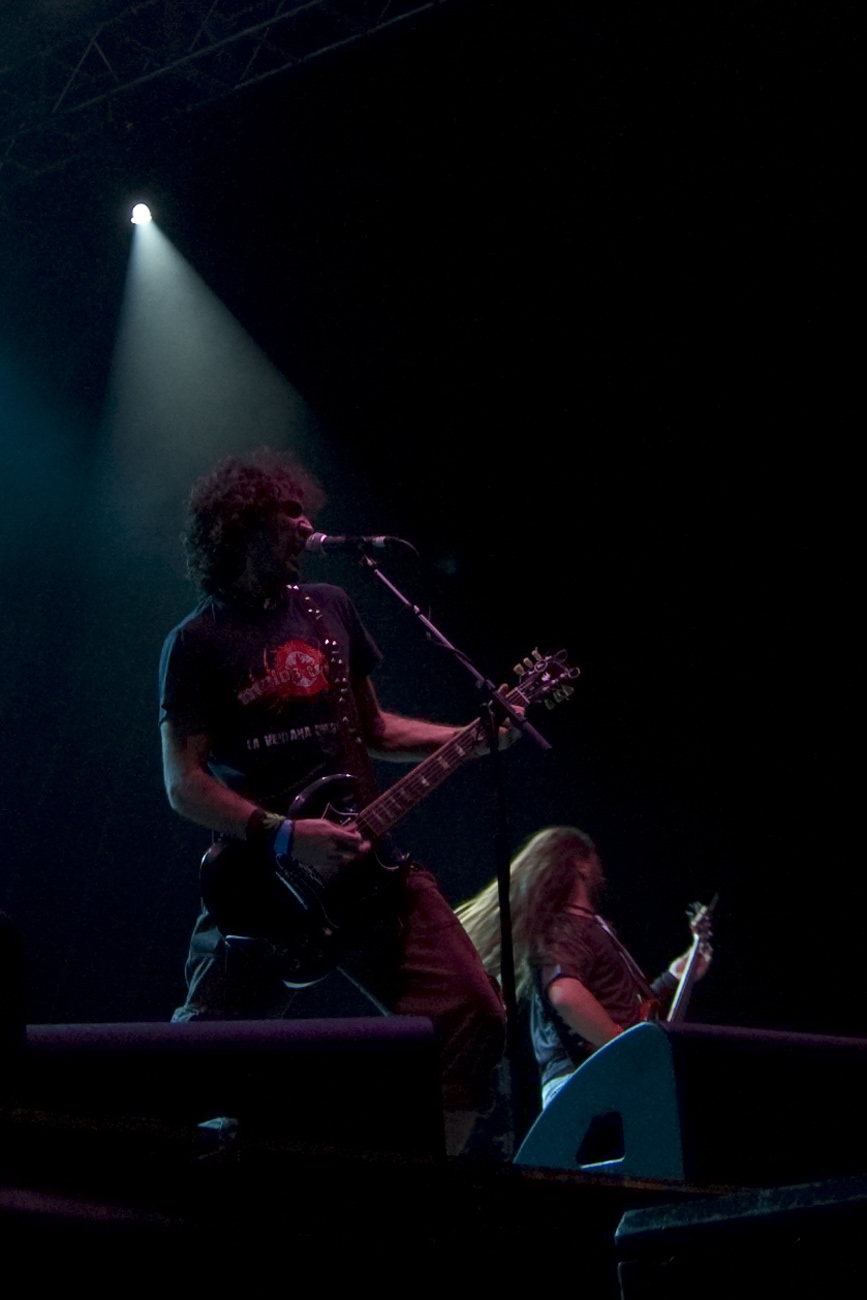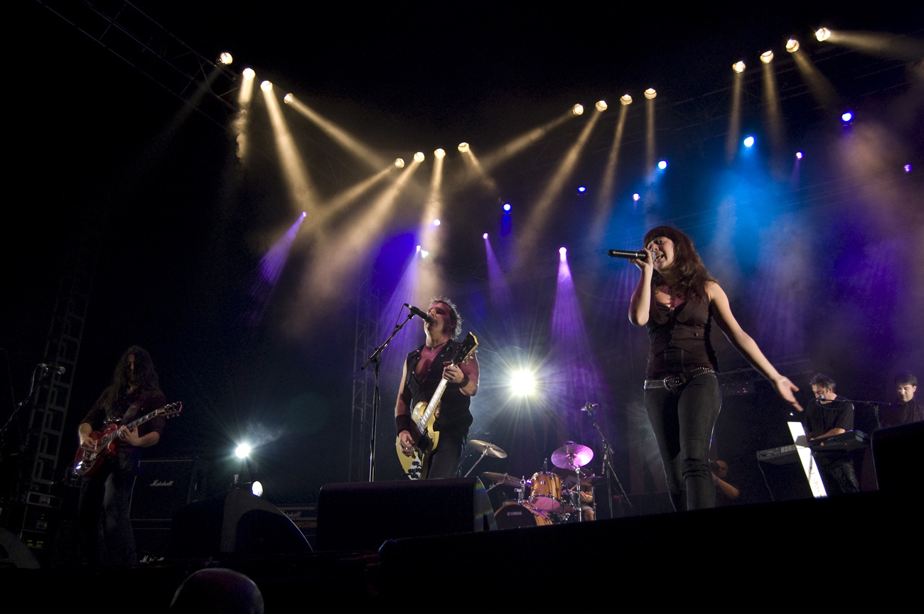 A las once y media arrancaba el concierto de los de Ejea. Un bolo especial, por la grabación de su directo, que a juzgar por las pancartas del público había unido a seguidores de buena parte de la geografía estatal. No fueron los únicos que se desplazaron para apoyar al grupo en un día tan señalado: la banda contó sobre el escenario con diversas colaboraciones. Así, se pudo escuchar un “Sangre y Sal” en voz del reincidente Fernando Madina y a María Villalón cantando Entre Tinieblas. Subieron también con sus instrumentos Jorge Salán (cuyas seis cuerdas militan actualmente en Mägo de Oz), J.M. Perez al saxo y Lorenzo Cortés en los teclados. Desde el público, algunas caras conocidas más: los Despistaos, Óscar Sancho (Lujuria) y otros músicos disfrutaban entre los asistentes de la cita. Quienes siguieran las noticias previas a la grabación, echarían en falta alguna colaboración adicional en forma de vocalistas, habiéndose barajado varios nombres de peso en las semanas previas, pero compaginar los compromisos de las bandas se lo puso difícil a los zaragozanos. El concierto duró alrededor de una hora cincuenta minutos, algo más que un concierto al uso de Tako pero quizás menos de lo esperado de cara a la grabación de un disco doble. Un total de 24 canciones sonaron en la noche, repasando la dilatada trayectoria de la banda. Cuando se cuenta cerca de un cuarto de siglo de vida musical, y trece discos, la selección de temas es una tarea ardua, pero los que sonaron fueron buena muestra de su evolución. No se anclaron en el pasado, en los claros temas imprescindibles, pero tampoco se dejaron llevar por la actualidad de sus últimos trabajos, logrando así un repertorio equilibrado. El grupo se mostró lleno de energía, seguro sobre las tablas, no pareciendo demasiado intimidados por la presión de la grabación del concierto, y el continuo trasiego de cámaras y de la cabeza caliente a su alrededor, fiel a sus movimientos. No dudaron en escuchar al público, en mostrarse cercanos y de improvisar, llegando su teclista, Nacho, a subirse a las vallas a petición del público para dejarse llevar por la marea de manos. Sólo resta esperar hasta Diciembre, mes en el que, si todo funciona como debe, podremos tener el testimonio de esta noche especial en forma de CD y DVD.