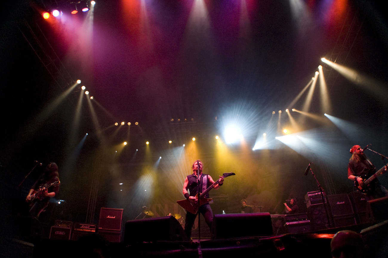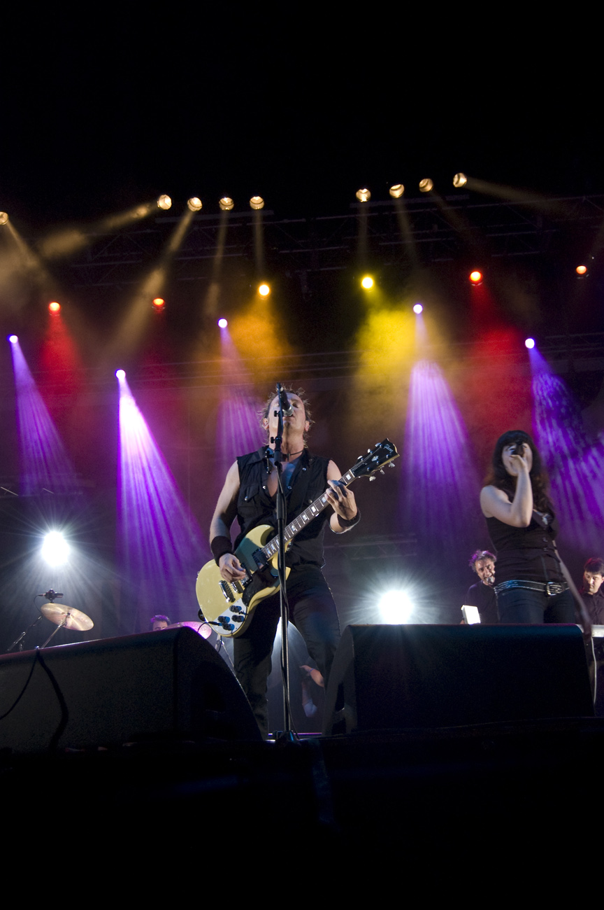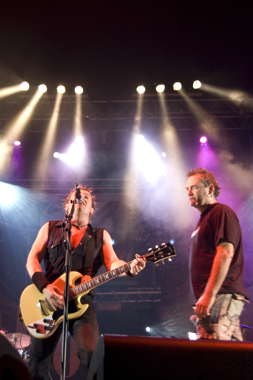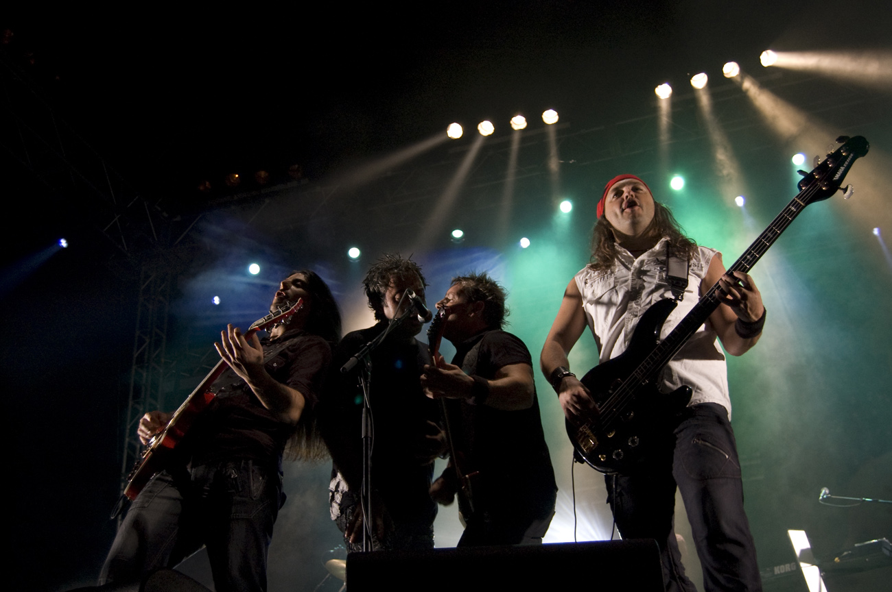A las once y media arrancaba el concierto de los de Ejea. Un bolo especial, por la grabación de su directo, que a juzgar por las pancartas del público había unido a seguidores de buena parte de la geografía estatal. No fueron los únicos que se desplazaron para apoyar al grupo en un día tan señalado: la banda contó sobre el escenario con diversas colaboraciones. Así, se pudo escuchar un “Sangre y Sal” en voz del reincidente Fernando Madina y a María Villalón cantando Entre Tinieblas. Subieron también con sus instrumentos Jorge Salán (cuyas seis cuerdas militan actualmente en Mägo de Oz), J.M. Perez al saxo y Lorenzo Cortés en los teclados. Desde el público, algunas caras conocidas más: los Despistaos, Óscar Sancho (Lujuria) y otros músicos disfrutaban entre los asistentes de la cita. Quienes siguieran las noticias previas a la grabación, echarían en falta alguna colaboración adicional en forma de vocalistas, habiéndose barajado varios nombres de peso en las semanas previas, pero compaginar los compromisos de las bandas se lo puso difícil a los zaragozanos. El concierto duró alrededor de una hora cincuenta minutos, algo más que un concierto al uso de Tako pero quizás menos de lo esperado de cara a la grabación de un disco doble. Un total de 24 canciones sonaron en la noche, repasando la dilatada trayectoria de la banda. Cuando se cuenta cerca de un cuarto de siglo de vida musical, y trece discos, la selección de temas es una tarea ardua, pero los que sonaron fueron buena muestra de su evolución. No se anclaron en el pasado, en los claros temas imprescindibles, pero tampoco se dejaron llevar por la actualidad de sus últimos trabajos, logrando así un repertorio equilibrado. El grupo se mostró lleno de energía, seguro sobre las tablas, no pareciendo demasiado intimidados por la presión de la grabación del concierto, y el continuo trasiego de cámaras y de la cabeza caliente a su alrededor, fiel a sus movimientos. No dudaron en escuchar al público, en mostrarse cercanos y de improvisar, llegando su teclista, Nacho, a subirse a las vallas a petición del público para dejarse llevar por la marea de manos. Sólo resta esperar hasta Diciembre, mes en el que, si todo funciona como debe, podremos tener el testimonio de esta noche especial en forma de CD y DVD.