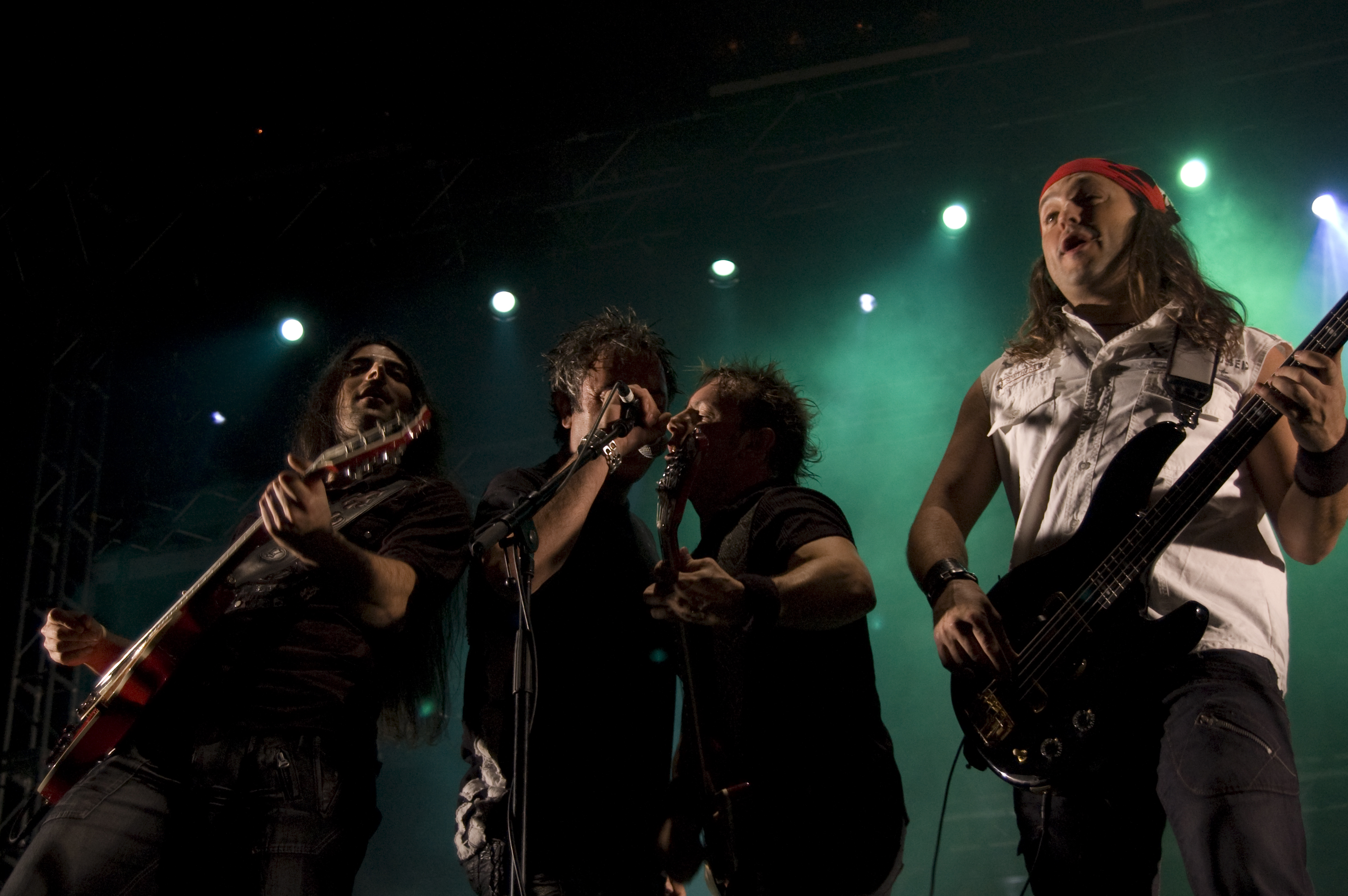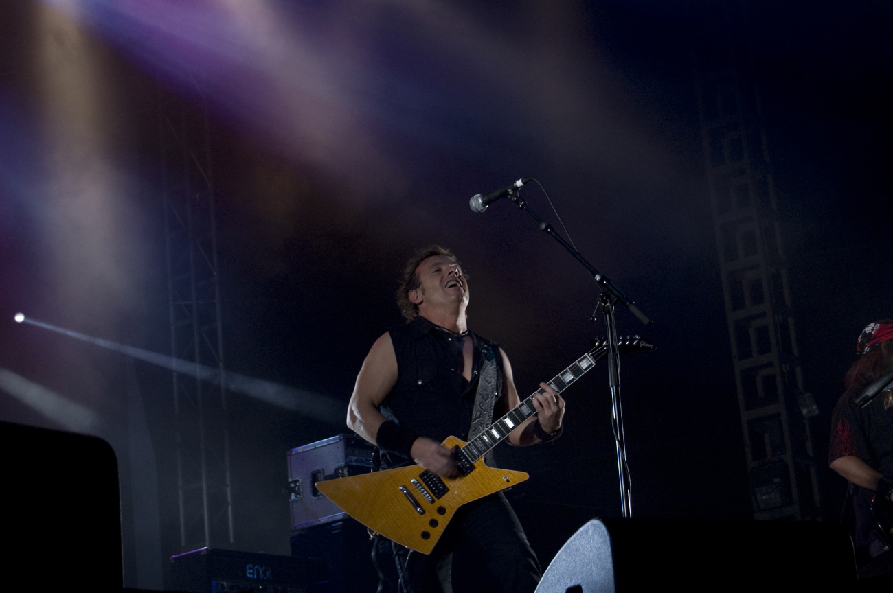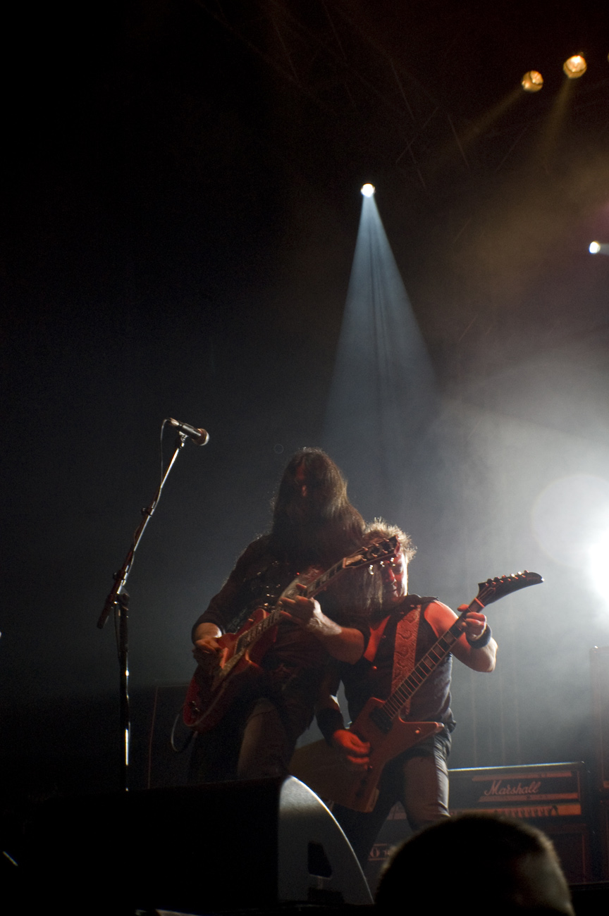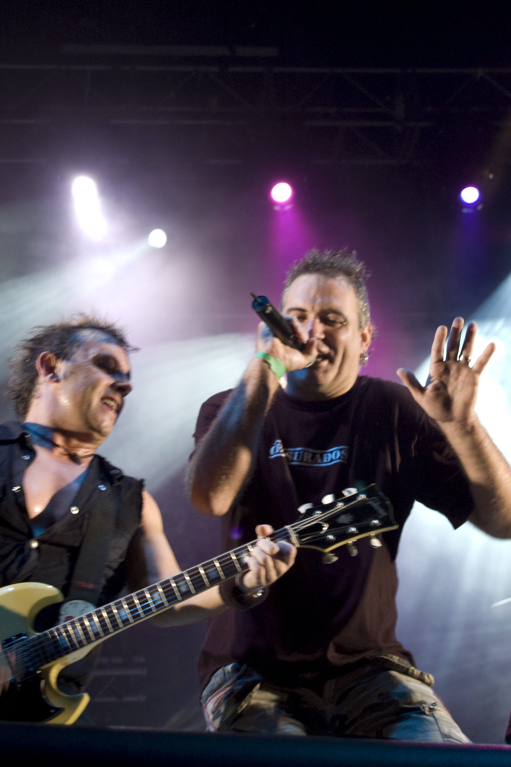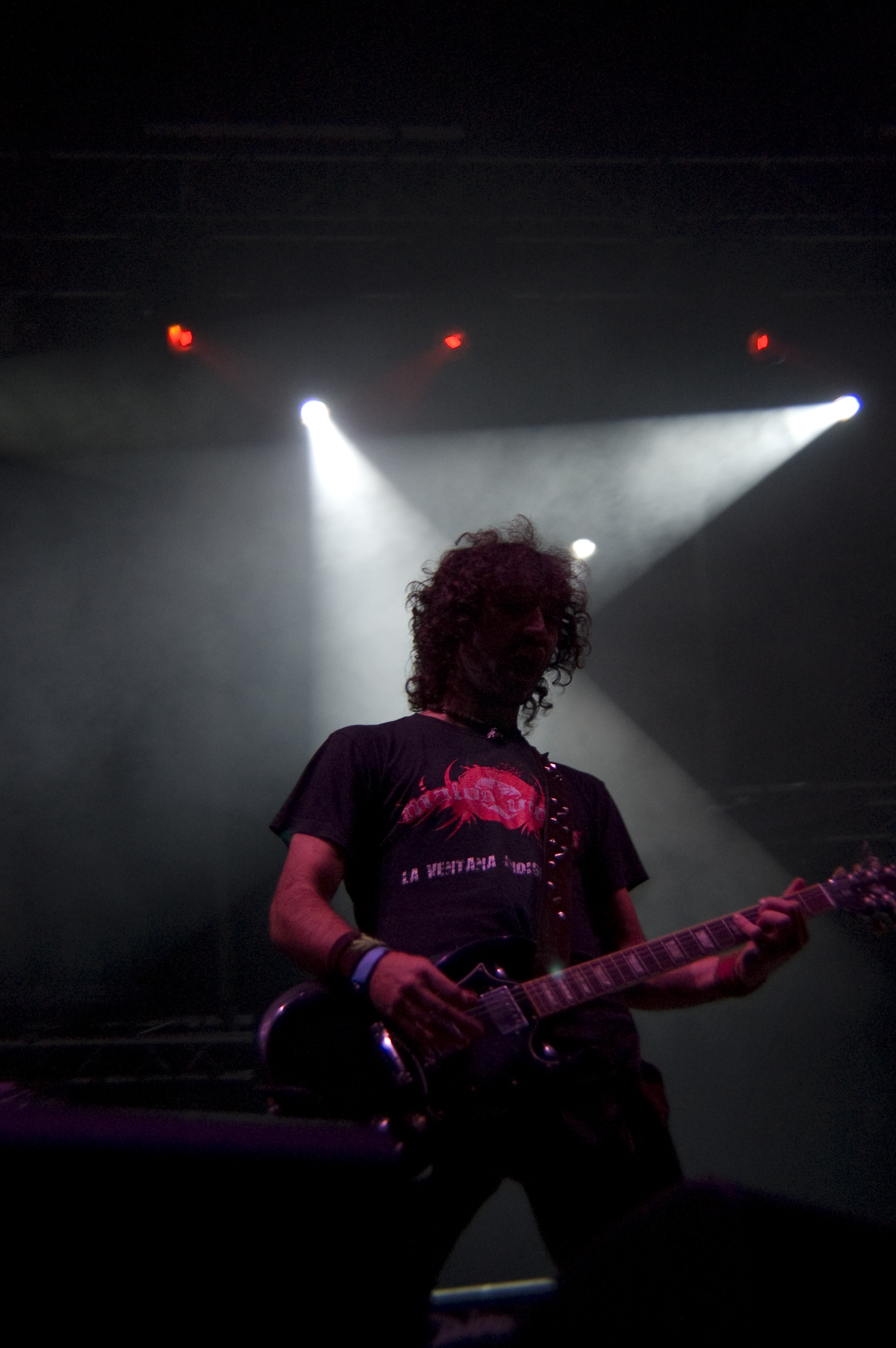 A las once y media arrancaba el concierto de los de Ejea. Un bolo especial, por la grabación de su directo, que a juzgar por las pancartas del público había unido a seguidores de buena parte de la geografía estatal. No fueron los únicos que se desplazaron para apoyar al grupo en un día tan señalado: la banda contó sobre el escenario con diversas colaboraciones. Así, se pudo escuchar un “Sangre y Sal” en voz del reincidente Fernando Madina y a María Villalón cantando Entre Tinieblas. Subieron también con sus instrumentos Jorge Salán (cuyas seis cuerdas militan actualmente en Mägo de Oz), J.M. Perez al saxo y Lorenzo Cortés en los teclados. Desde el público, algunas caras conocidas más: los Despistaos, Óscar Sancho (Lujuria) y otros músicos disfrutaban entre los asistentes de la cita. Quienes siguieran las noticias previas a la grabación, echarían en falta alguna colaboración adicional en forma de vocalistas, habiéndose barajado varios nombres de peso en las semanas previas, pero compaginar los compromisos de las bandas se lo puso difícil a los zaragozanos. El concierto duró alrededor de una hora cincuenta minutos, algo más que un concierto al uso de Tako pero quizás menos de lo esperado de cara a la grabación de un disco doble. Un total de 24 canciones sonaron en la noche, repasando la dilatada trayectoria de la banda. Cuando se cuenta cerca de un cuarto de siglo de vida musical, y trece discos, la selección de temas es una tarea ardua, pero los que sonaron fueron buena muestra de su evolución. No se anclaron en el pasado, en los claros temas imprescindibles, pero tampoco se dejaron llevar por la actualidad de sus últimos trabajos, logrando así un repertorio equilibrado. El grupo se mostró lleno de energía, seguro sobre las tablas, no pareciendo demasiado intimidados por la presión de la grabación del concierto, y el continuo trasiego de cámaras y de la cabeza caliente a su alrededor, fiel a sus movimientos. No dudaron en escuchar al público, en mostrarse cercanos y de improvisar, llegando su teclista, Nacho, a subirse a las vallas a petición del público para dejarse llevar por la marea de manos. Sólo resta esperar hasta Diciembre, mes en el que, si todo funciona como debe, podremos tener el testimonio de esta noche especial en forma de CD y DVD.