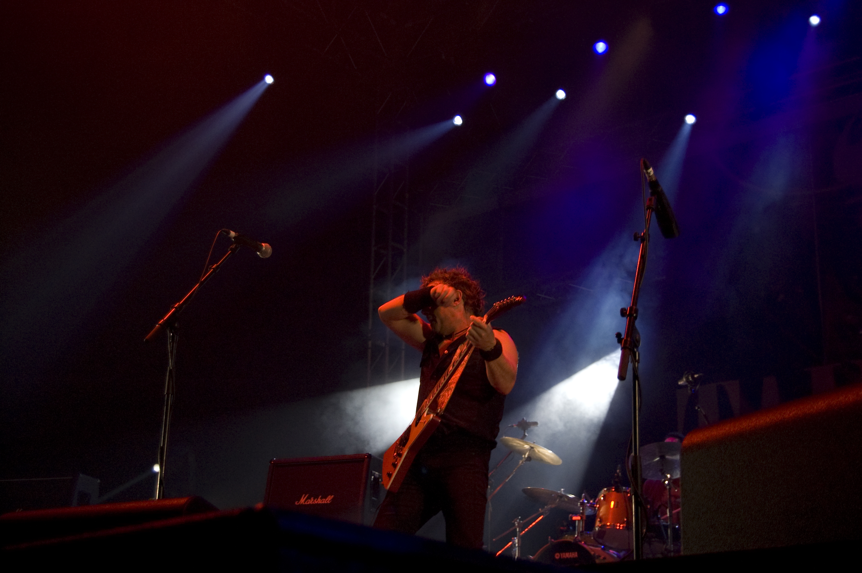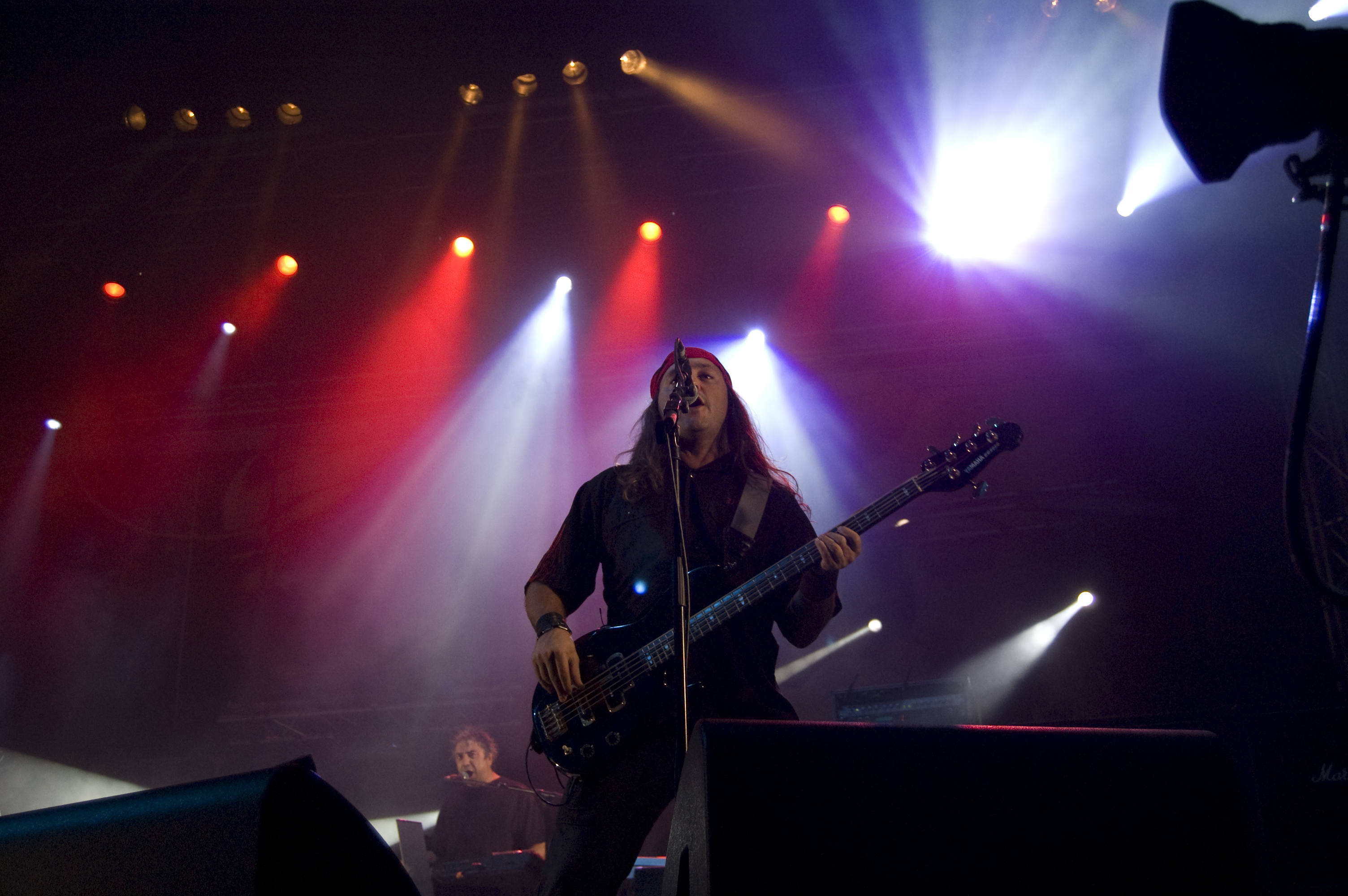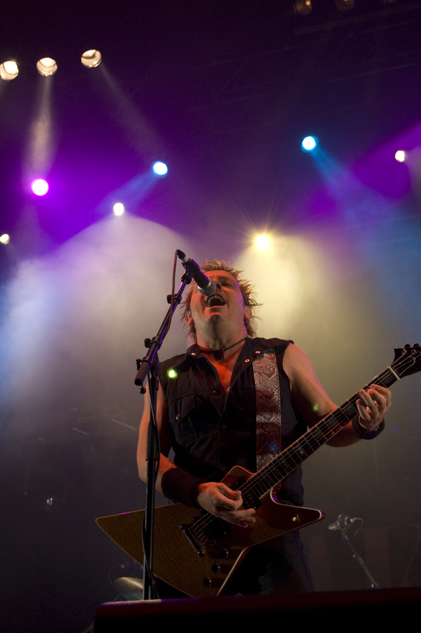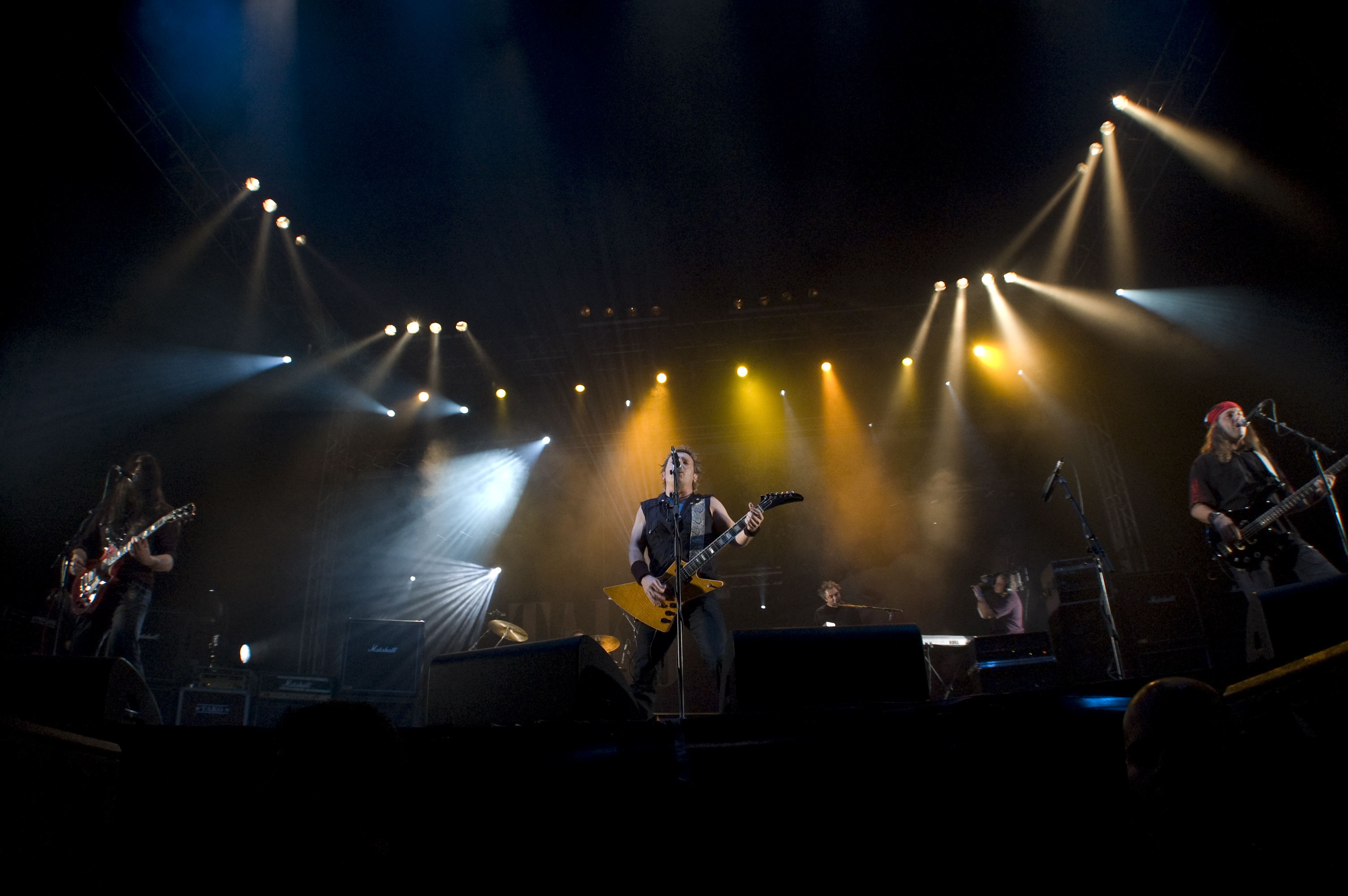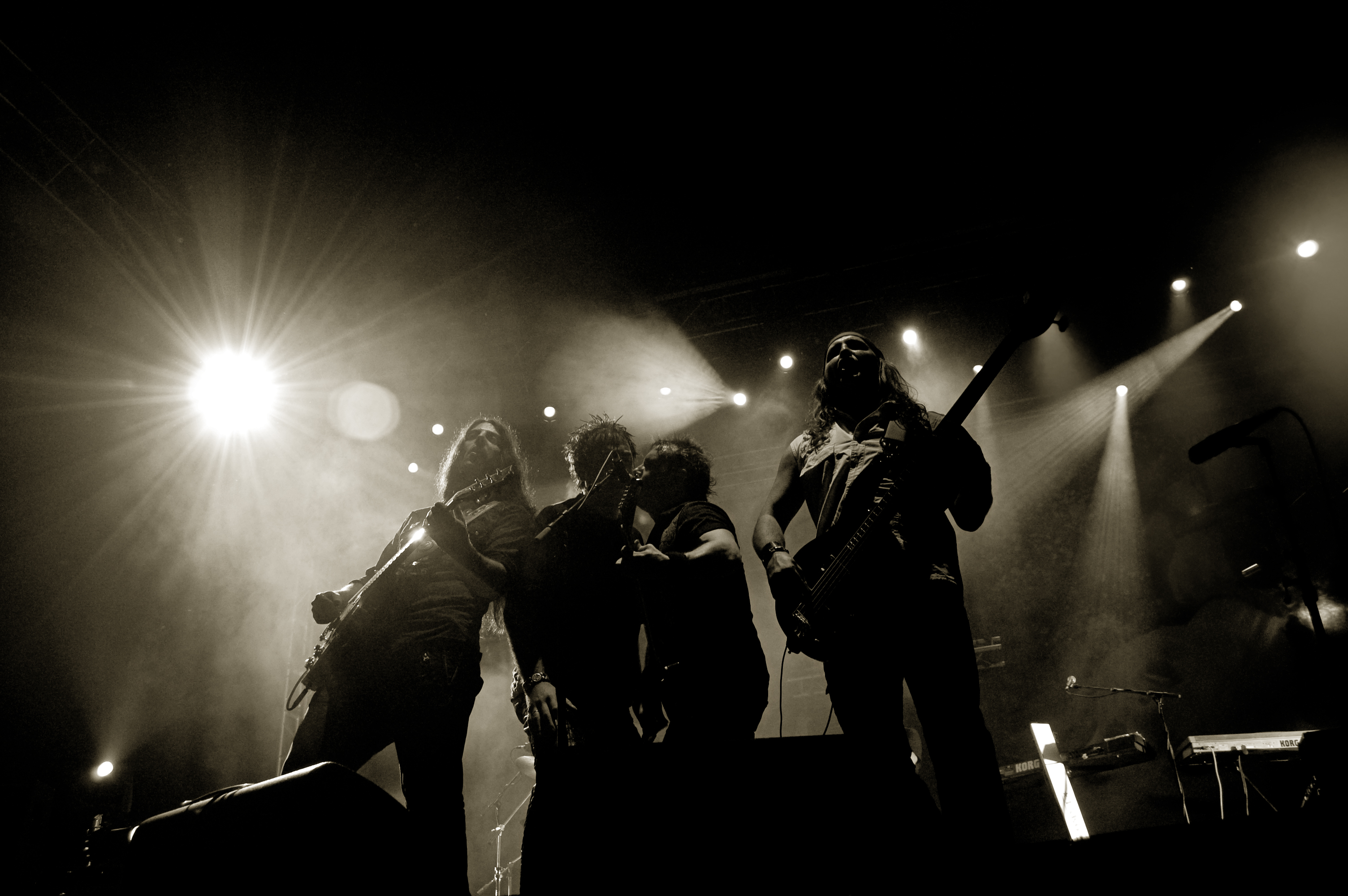 A las once y media arrancaba el concierto de los de Ejea. Un bolo especial, por la grabación de su directo, que a juzgar por las pancartas del público había unido a seguidores de buena parte de la geografía estatal. No fueron los únicos que se desplazaron para apoyar al grupo en un día tan señalado: la banda contó sobre el escenario con diversas colaboraciones. Así, se pudo escuchar un “Sangre y Sal” en voz del reincidente Fernando Madina y a María Villalón cantando Entre Tinieblas. Subieron también con sus instrumentos Jorge Salán (cuyas seis cuerdas militan actualmente en Mägo de Oz), J.M. Perez al saxo y Lorenzo Cortés en los teclados. Desde el público, algunas caras conocidas más: los Despistaos, Óscar Sancho (Lujuria) y otros músicos disfrutaban entre los asistentes de la cita. Quienes siguieran las noticias previas a la grabación, echarían en falta alguna colaboración adicional en forma de vocalistas, habiéndose barajado varios nombres de peso en las semanas previas, pero compaginar los compromisos de las bandas se lo puso difícil a los zaragozanos. El concierto duró alrededor de una hora cincuenta minutos, algo más que un concierto al uso de Tako pero quizás menos de lo esperado de cara a la grabación de un disco doble. Un total de 24 canciones sonaron en la noche, repasando la dilatada trayectoria de la banda. Cuando se cuenta cerca de un cuarto de siglo de vida musical, y trece discos, la selección de temas es una tarea ardua, pero los que sonaron fueron buena muestra de su evolución. No se anclaron en el pasado, en los claros temas imprescindibles, pero tampoco se dejaron llevar por la actualidad de sus últimos trabajos, logrando así un repertorio equilibrado. El grupo se mostró lleno de energía, seguro sobre las tablas, no pareciendo demasiado intimidados por la presión de la grabación del concierto, y el continuo trasiego de cámaras y de la cabeza caliente a su alrededor, fiel a sus movimientos. No dudaron en escuchar al público, en mostrarse cercanos y de improvisar, llegando su teclista, Nacho, a subirse a las vallas a petición del público para dejarse llevar por la marea de manos. Sólo resta esperar hasta Diciembre, mes en el que, si todo funciona como debe, podremos tener el testimonio de esta noche especial en forma de CD y DVD.