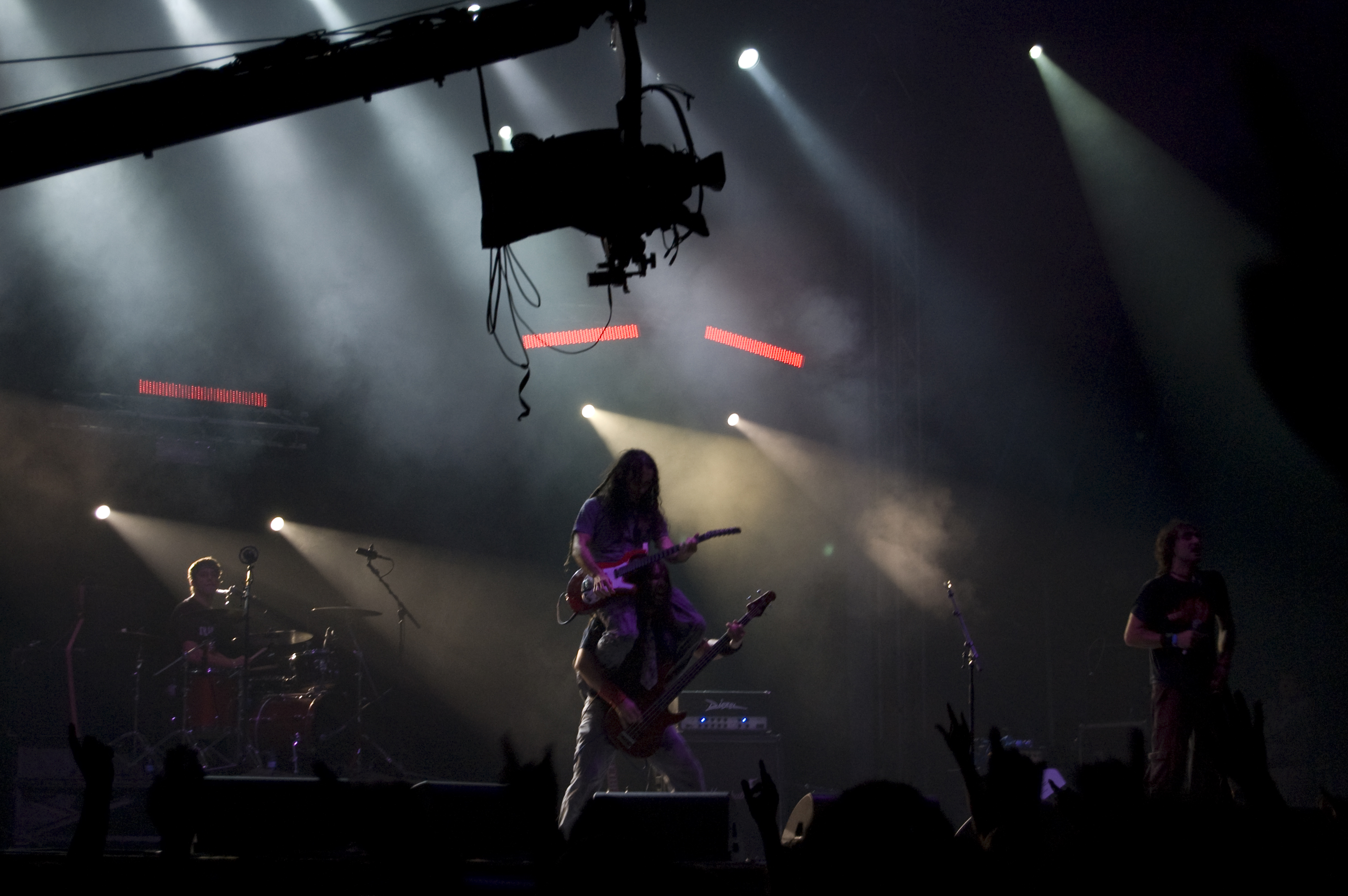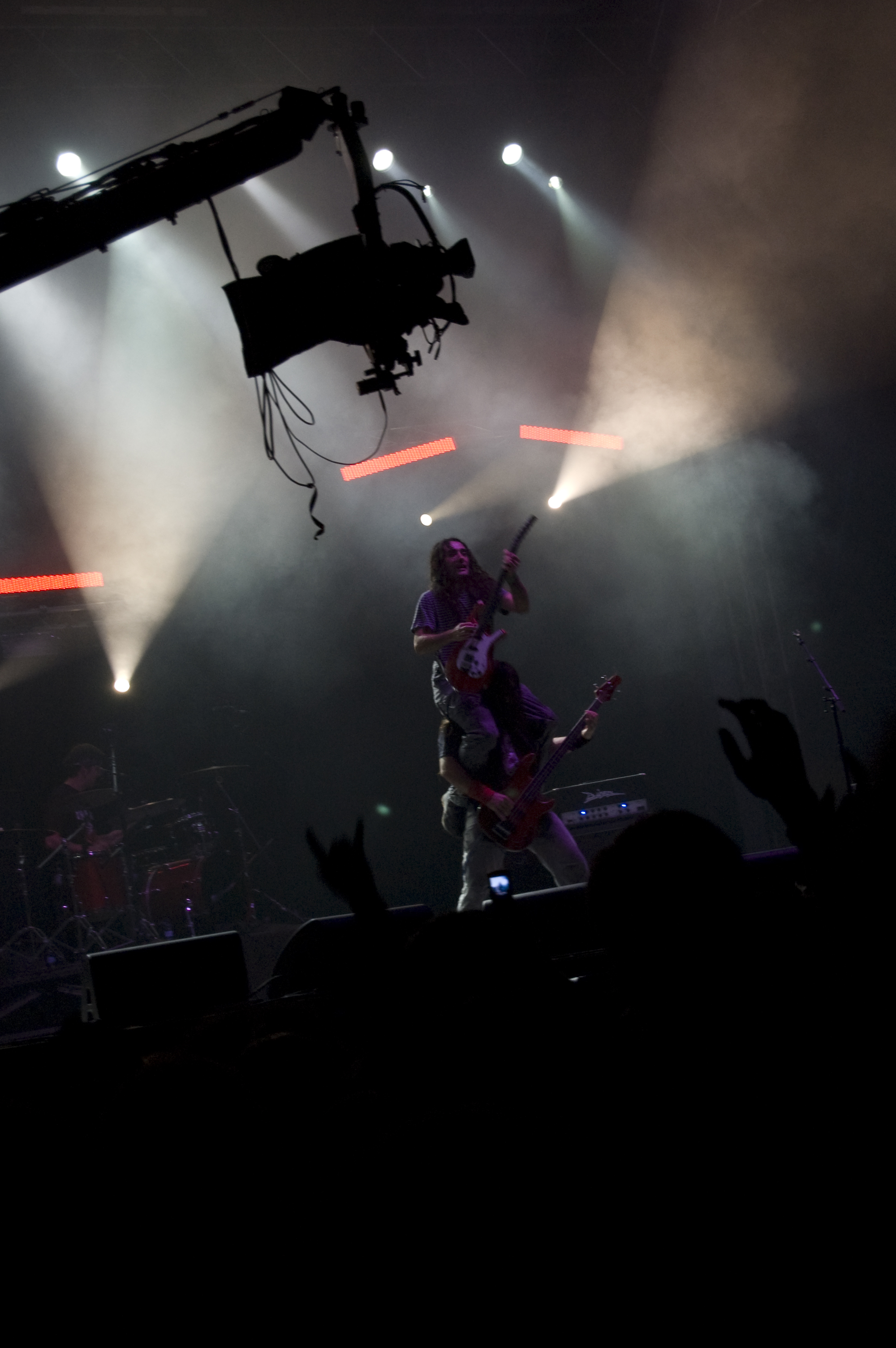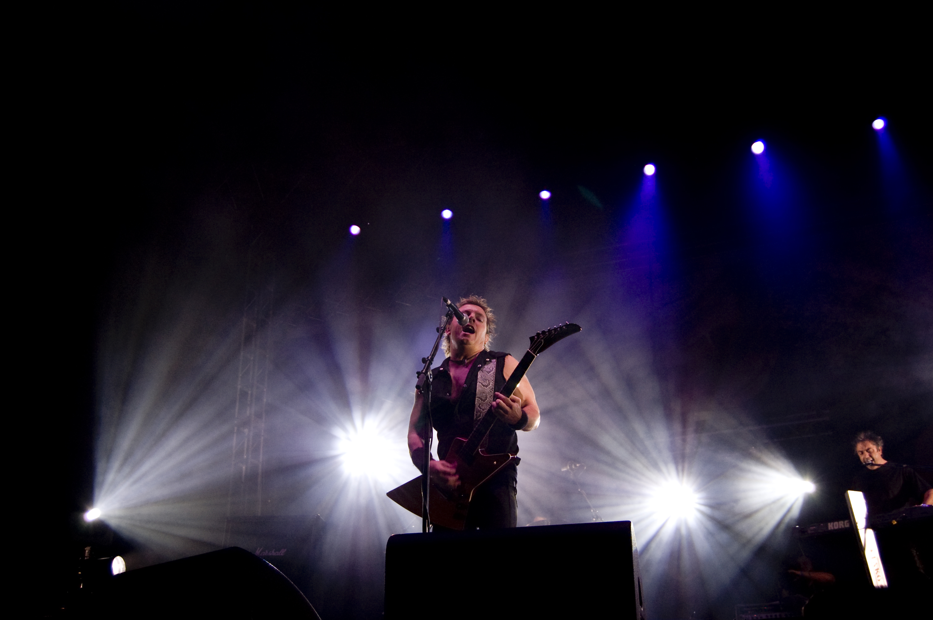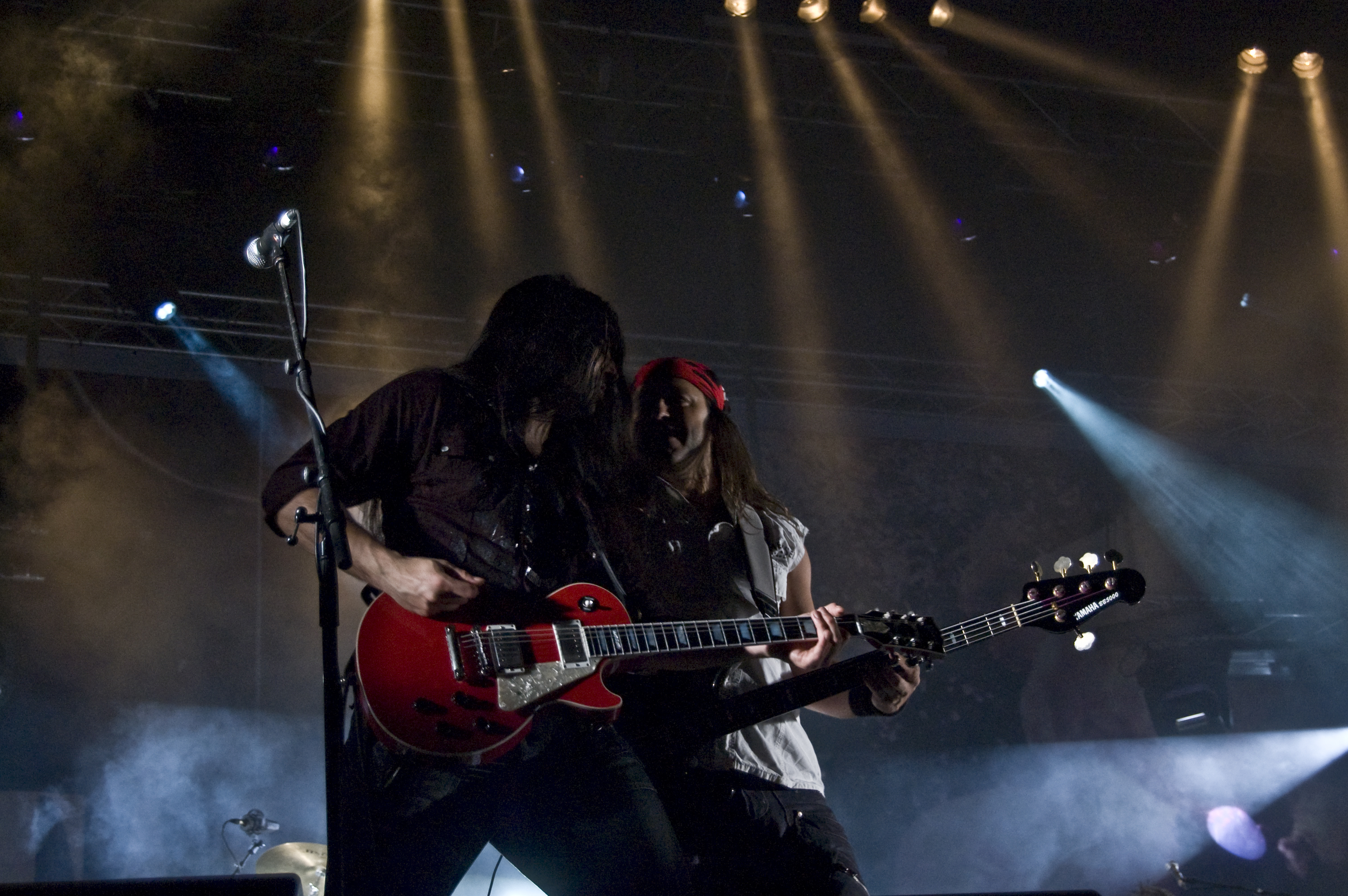 A las once y media arrancaba el concierto de los de Ejea. Un bolo especial, por la grabación de su directo, que a juzgar por las pancartas del público había unido a seguidores de buena parte de la geografía estatal. No fueron los únicos que se desplazaron para apoyar al grupo en un día tan señalado: la banda contó sobre el escenario con diversas colaboraciones. Así, se pudo escuchar un “Sangre y Sal” en voz del reincidente Fernando Madina y a María Villalón cantando Entre Tinieblas. Subieron también con sus instrumentos Jorge Salán (cuyas seis cuerdas militan actualmente en Mägo de Oz), J.M. Perez al saxo y Lorenzo Cortés en los teclados. Desde el público, algunas caras conocidas más: los Despistaos, Óscar Sancho (Lujuria) y otros músicos disfrutaban entre los asistentes de la cita. Quienes siguieran las noticias previas a la grabación, echarían en falta alguna colaboración adicional en forma de vocalistas, habiéndose barajado varios nombres de peso en las semanas previas, pero compaginar los compromisos de las bandas se lo puso difícil a los zaragozanos. El concierto duró alrededor de una hora cincuenta minutos, algo más que un concierto al uso de Tako pero quizás menos de lo esperado de cara a la grabación de un disco doble. Un total de 24 canciones sonaron en la noche, repasando la dilatada trayectoria de la banda. Cuando se cuenta cerca de un cuarto de siglo de vida musical, y trece discos, la selección de temas es una tarea ardua, pero los que sonaron fueron buena muestra de su evolución. No se anclaron en el pasado, en los claros temas imprescindibles, pero tampoco se dejaron llevar por la actualidad de sus últimos trabajos, logrando así un repertorio equilibrado. El grupo se mostró lleno de energía, seguro sobre las tablas, no pareciendo demasiado intimidados por la presión de la grabación del concierto, y el continuo trasiego de cámaras y de la cabeza caliente a su alrededor, fiel a sus movimientos. No dudaron en escuchar al público, en mostrarse cercanos y de improvisar, llegando su teclista, Nacho, a subirse a las vallas a petición del público para dejarse llevar por la marea de manos. Sólo resta esperar hasta Diciembre, mes en el que, si todo funciona como debe, podremos tener el testimonio de esta noche especial en forma de CD y DVD.