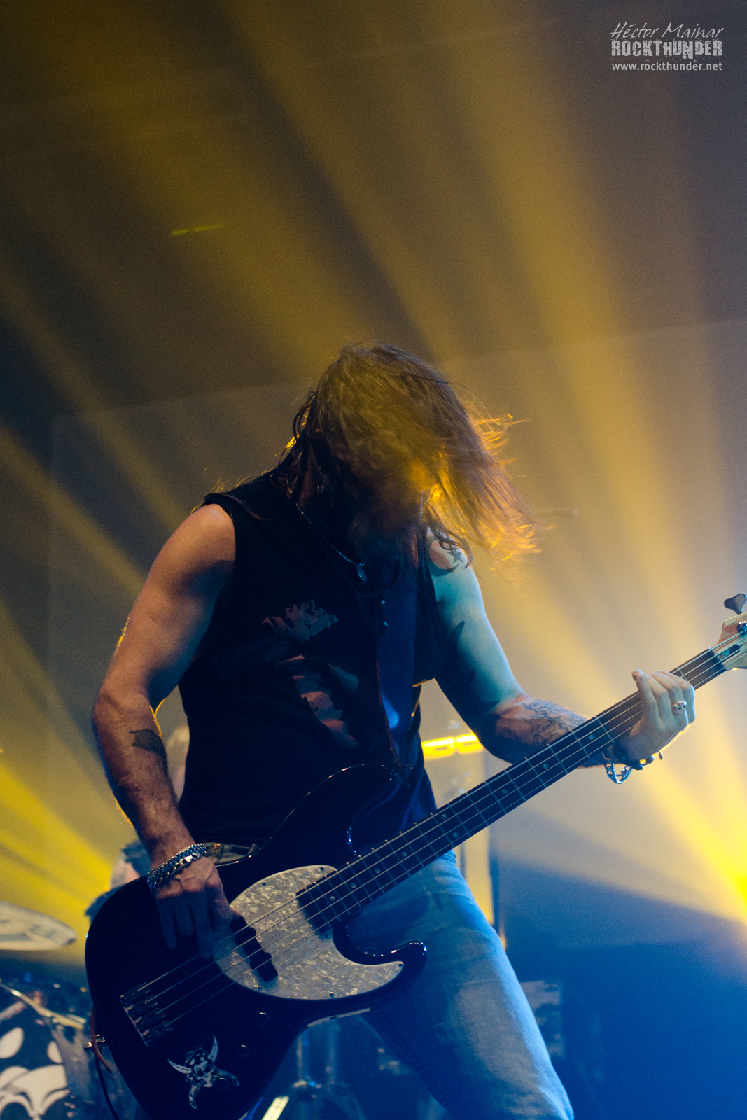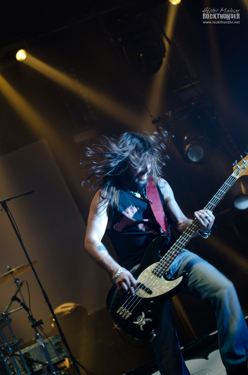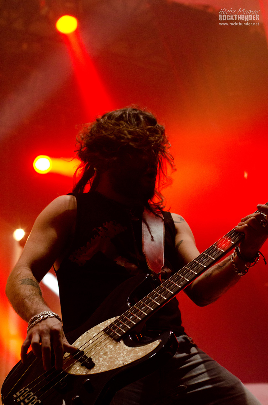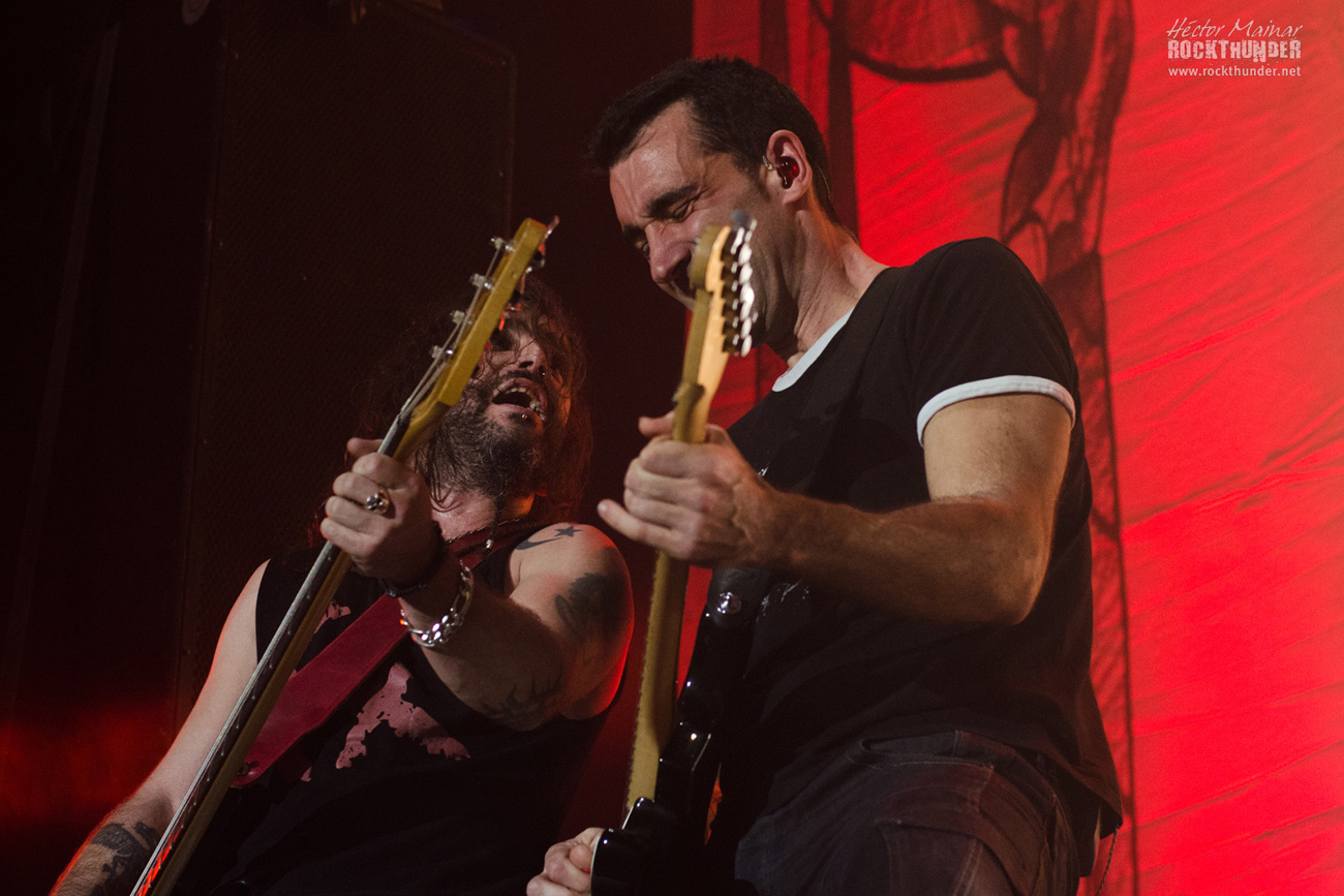 Era tiempo de saludar al público y aprovecharon también para saludar al grupo local (saludo el cual fue muy bien recibido y secundado por el público) Doble V. Pocas palabras y mucho rock fue lo que siguió, con canciones tanto nuevas como de sus discos más anriguos (Canaleros alternado con Que se joda el viento entre otras); coñas sobre el parecido entre Kolibri y Clive Owen e incluso la petición de que alguna cantase una jota. Mediaba ya el concierto cuando, como siempre, Kutxi dejó paso al Piñas a la voz, lo cual dio paso a algunas de las canciones más rockeras del grupo como Trasegando y otros clásicos que ya asociamos en vivo al imparable bajista. Mucho juego de guitarra y de luces y carreras a lo largo del escenario, e incluso aprovecharon para hacer un “duelo de guitarras”. Eso fue lo que hubo en ese momento del concierto.