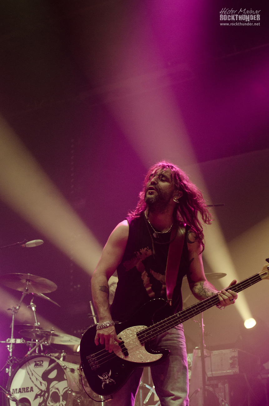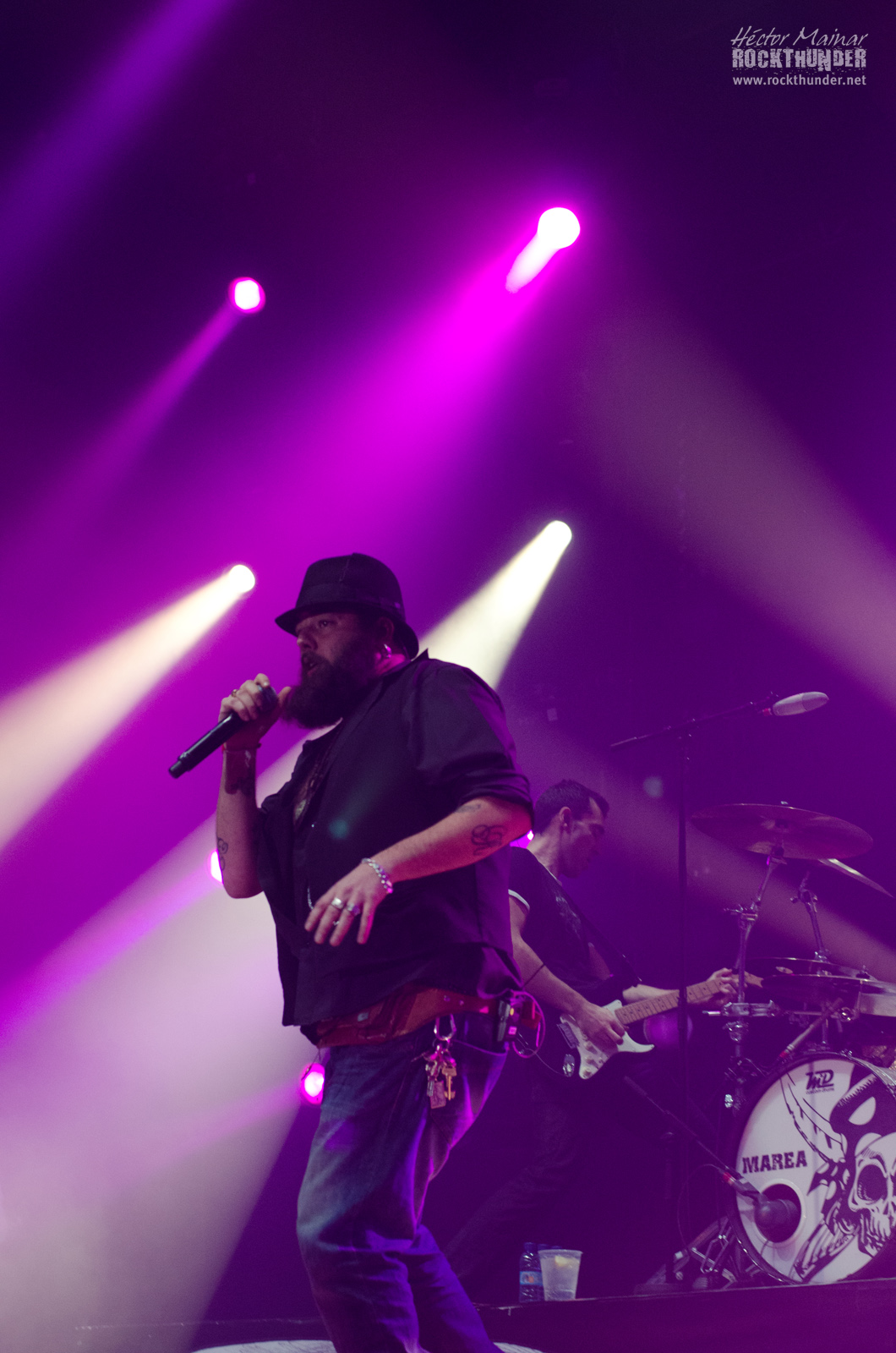 Volvió Kutxi de la mano de Ángeles del suelo y posteriormente manos y mecheros indicaban el principio Ciudad de los gitanos que da paso a un buen solo de Kolibri -cada vez con más peso en la banda, ya no sólo en las grabaciones sino sobre el escenario-. A partir de este momento las pausas entre canciones y las conversaciones con el público fueron más y más largas, perdiendo algo de fuelle. Llegaba el final del concierto y los Marea siguieron en su línea de alternar la presentación de En mi hambre mando yo -que el público ya conoce con creces- con temas más viejos, escogiendo cada vez pasajes más tralleros. Enlazando La rueca con Pedimento hicieron saltar a toda la sala, cerrando con Como los trileros.
